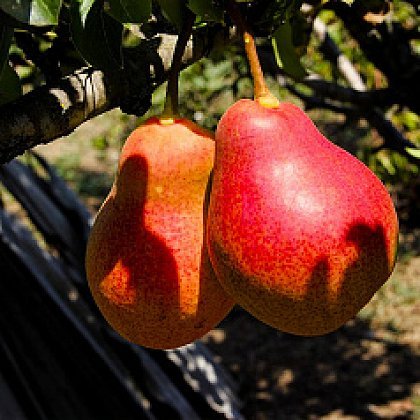 Плоды - крупные 250-700 г, коротко-грушевидной формы, золотисто-желтые с ярким красным румянцем.