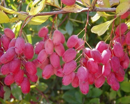 Барбарис относится к роду кустарников Берберис (Berberis) и к семейству барбарисовых. Это очень колючий кустарник, имеющий мощную корневую систему. У него некрупные листья, длина которых 3-4 см. С наступлением осени листья барбариса становятся пурпурного цвета. В кисти собрано до 25 мелких с ярко-желтой окраской цветков. В природе насчитывается до 500 видов этих кустарников. Зацветает барбарис в мае, а на Севере – в начале июня. Плоды – ярко-красные кислые ягоды, достигающие длины 2 см и массы 0,3 г. Стебли и корни, благодаря содержанию в них алкалоида берберина, на изломе имеют лимонный цвет. Побеги и стволы кустарника покрыты колючками, которые напоминают трезубцы. Собирая ягоды барбариса, невозможно не уколоться об эти колючки. Поэтому барбарис часто используют в виде живой изгороди. Кустарник может достигать двух метров высоты.