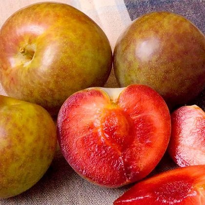 Гібрид слива+абрикос "Плумкот" - це середньостиглий гібрид, який має ознаки сливи та абрикосу. Підходить для виготовлення соку та вживання у свіжому вигляді. Дерево акуратне, низькоросле. максимальне зростання 2,5 – 3 метри. Форма крони нагадує колону, пагони невеликі, бічні пагони можуть бути відсутніми. Здається, що фрукти ростуть просто на стволі. З дерева збирають 30-50 кг. Плоди насичено – червоного кольору, вагою до 60 г, солодкі, середньої густини з пружною шкіркою. Смак нагадує абрикос.