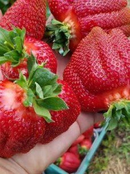В начале сезона первые плоды обладают большими размерами, и достигают веса до 130 г, в дальнейшем, к концу сезона плод мельчает вдвое. Ягоды обладают темно-красным цветом, имеют шершавую поверхность.