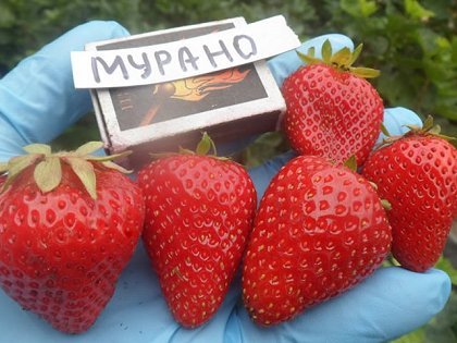 Ягоды правильной формы – конические. Масса ягод до 25-35 грамм. Цвет – ярко-красный, с блестящей поверхностью. Вкус гармоничный, запах насыщенный. Ягоды хорошо переносят транспортировку, а так же длительное хранение. Сорт Мурано можно выращивать на ослабленных почвах. Очень урожайный сорт, отличается высокой устойчивостью к основным болезням и вредителям.