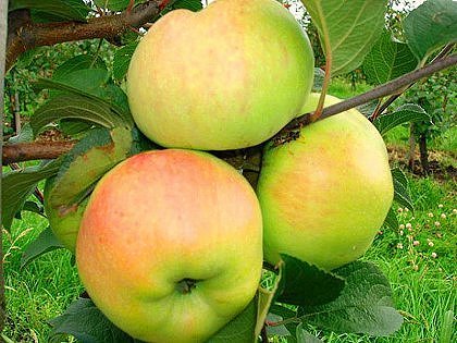 Плоды массой 140-180 г, зеленовато-жёлтые, со светло-красным размытым румянцем. Мякоть белая, очень нежная, сочная, хорошего кисло-сладкого вкуса (4,3 балла).