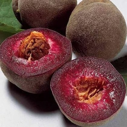 Персик Эритрокарпа (красномясый) - новый сорт персика с красной мякотью позднего срока созревания (10 - 20 сентября) выведен в Украине, заслуженным селекционером Василием Зайцевым. Дерево не высокое, вырастает до 2,5-3,0 метров, крона средне-раскидиста, молодые саженцы отличаются цветом коры - серо-розовой окраски. Плоды крупные средней массой около 150-180гр, округлой формы, красно-розовой окраски.