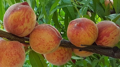 Описание Персик "Кондор" – сильнорослое, многолетнее дерево, летний сорт, ориентировочный срок созревания – середина лета. Крона раскидистая, широкая. Листья зелёные, удлинённые, заострённый кончик выражен. Цветёт дружно до появления листьев яркими, пятилепестковыми, розовыми цветами. Плоды крупные, вес от 180 до 250 грамм, форма округлая, овальная. Кожица слабо опушена, плотная, тонкая, оранжевая, присутствует обильный тёмно-красный румянец. Мякоть мясистая, сочная, плотная, оранжево-жёлтая, с красноватыми прожилками. Вкус приятный, сладкий с кислинкой. Косточка жёсткая, заострённая, с характерными полосками, хорошо отделяется. Начинает плодоносить на третий год. Преимущества: повышенная зимостойкость, высокие показатели урожайности, отличная транспортабельность, долгий срок хранения, хорошие товарные, вкусовые качества.
