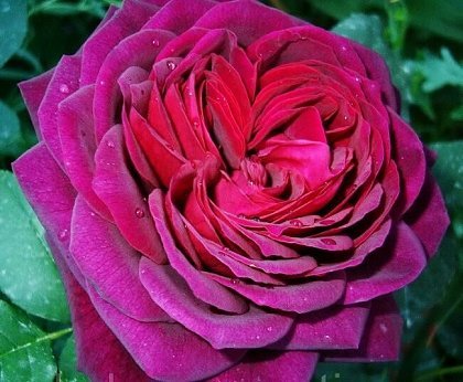 Отличительной чертой розы Astrid Grafin von Hardenberg является необычная расцветка цветка: от насыщено-бордовой серединки до пурпурно-фиолетовых с бархатным отливом лепестков. Романтическая густомахровая форма цветка соответствует стилю старинных роз. Бутоны собраны кистями по 1-3 цветка, нарядно смотрят вверх. Прекрасно держит цветок. Хорошо зимует, переносит жаркое лето, не болеет. За свой восхитительный цвет и аромат, роза завоевала множество наград.