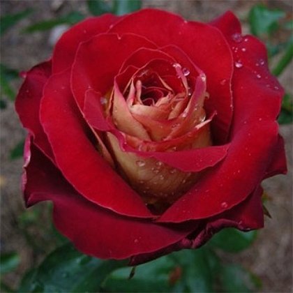 Двухцветная роза, наружная сторона серебристо-желтая, внутренняя темно-красно-бордовая, бутон очень плотный с высоким центром 10-12 см .