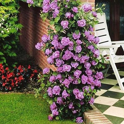 Van de Laak, 1981 (Нидерланды). Роза Indigoletta умеет очаровывать своим цветом и запахом. Даже искушенные садоводы не могут устоять перед этим цветком, щедро одаренным матерью-природой (не без помощи селекционеров) невероятной красотой и хорошими характеристиками. Знатоки говорят, что запах розы Indigoletta чем-то напоминает запах старинных дамасских роз - он довольно сильный, но приятный. Цветки фиолетовые, крупные (10 см в диаметре), махровые с необычайно сильным ароматом чайных роз. Роза хорошо переносит полутенистые места и при этом окраска цветка улучшается. Сорт достаточно зимостоек и устойчив к болезням. Высота куста до 300 см. Цветки собраны в соцветия по 2-3 цветка. Листья темно-зеленые, глянцевые, плотные.