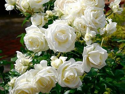 Ароматные, махровые цветки с высоким центром, достигающие в диаметре 7-8 см имеют очень схожую форму с чайно-гибридной розой. Цветы Белянки обильно украшают сильные, хорошо облиственные кусты. Плотная, глянцевая листва темно-зеленого цвета служит прекрасным фоном для белоснежных цветков, которые лишь изредка приобретают кремоватый оттенок. Красивой формы цветки состоят из 40-50 лепестков, и эти лепестки довольно искусно сложены так, что возникает впечатление абсолютно плотного цветочка, который обрамлен наружными отогнутыми лепестками, которые напоминают белоснежную концертную юбку балерины. К сожалению, эти прекрасные цветки не очень долго держатся на растении в таком виде, так как быстро раскрываются, но этот недочет незаметен благодаря большому количеству цветков, которые переключают внимание на свои декоративные качества, превращая куст Белянки в белоснежный акцент в вашем саду. Помимо прекрасных декоративных качеств Белянка обладает высокой устойчивостью к болезням и морозам. Именно благодаря её декоративности, обильному и непрерывному цветению, высокой устойчивости, прекрасному аромату Белянка будет отличным вариантом как для групповых посадок, солитерного использования, так и для озеленения невысоких стен и оград.