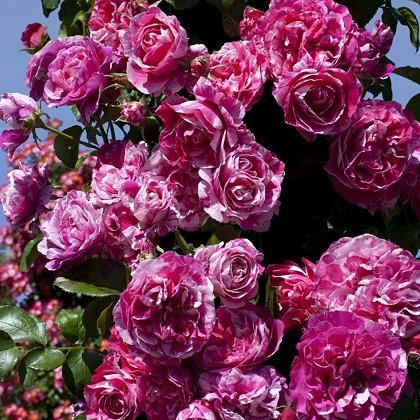 Роза отличается оригинальным окрасом цветка. Лепестки красно-малиновые с розово-сиреневыми полосами и штрихами. Цветки густомахровые, до 80 лепестков, крупные, 10-12 см в диаметре, обладают насыщенным яблочным ароматом с нотками трав. Цветение обильное, с июня до заморозков, цветки собраны в соцветия по 5-10 штук. Кусты до 2 метров в высоту, покрыты тёмно-зелеными, глянцевыми листьями, устойчивыми к грибковым заболеваниям.