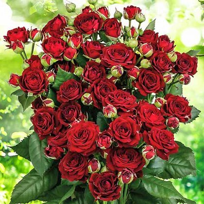 Роза спрей Ред Сенсейшн – невероятно элегантный сорт с темно-алыми бутонами. Их диаметр достигает 6 см, а цветение длится практически весь теплый период года. Цветы выигрывают за счет того, что бутоны собраны в соцветия по несколько штук. Кустарники средней высоты – 50-60 см с компактными аккуратными кронами. Листва довольно крупная, удлиненной формы, темно-изумрудная с глянцевым блеском. Заказать саженцы розы спрей Ред Сенсейшн можно для посадки в альпинариях и миксбордерах, а также вазонах и контейнерах.
