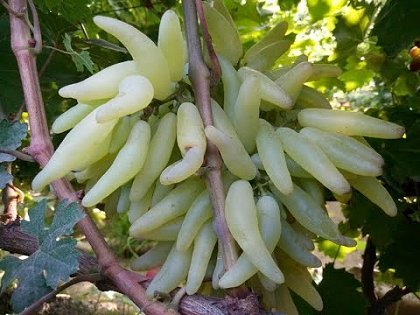 Нова гібридна форма винограду Азія, селекція виведена Калугіним Віктором Михайловичем. Збирання врожаю з другої декади серпня, середнього терміну дозрівання. Кущ сильнорослий. Характеризується пухкими гронами відмінного товарного вигляду, ягода до 7 см завдовжки, близько 20 грам, незвичайної видовженої форми, дуже схожа на виноград жіночі Пальчики. М’якуш щільний, хрумкий, смак сортовий гармонійний. Морозостійкість -23 °C
