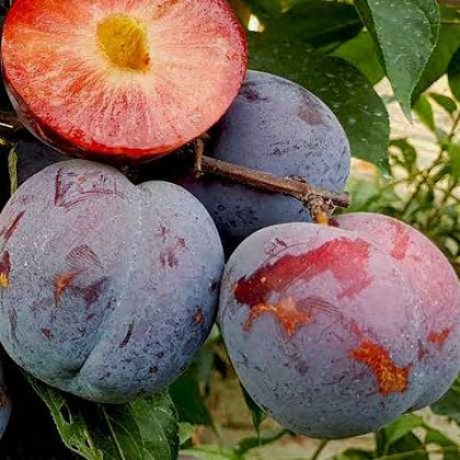 Описание Слива "Бербанк гигант" – сорт диплоидной сливы среднего срока созревания. Выведен известным селекционером Лютером Бербанком. Сбор урожая с 20 июля - 10 августа. Плоды довольно долго сохраняются на дереве и не осыпаются. Масса плодов около 150г. Сорт считается самым крупноплодным среди диплоидных слив, диаметром до 9см. Окраска плодов темно-бордовая, покрыты сизым пруиновым налетом. Внешне плоды красивые и нарядные. Высокотоварные и пригодны к транспортировке. Назначение плодов универсальное. Мякоть красная, средней плотности, очень сладкая, ароматная, отличного кисло-сладкого сбалансированного вкуса с преобладанием сахара. Косточка маленькая, от мякоти отделяется. Деревья среднерослые, высокоурожайные, рано вступают в плодоношение. Зимостойкость деревьев высокая. Пригодны для выращивания в большинстве регионах Украины.