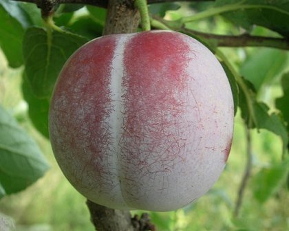 Плоды красивые, красно-фиолетовые, крупные, массой 40 г, округлоприплюснутые. Кожица имеет желтую основную и красно-фиолетовую покровную окраску на большей части плода.
