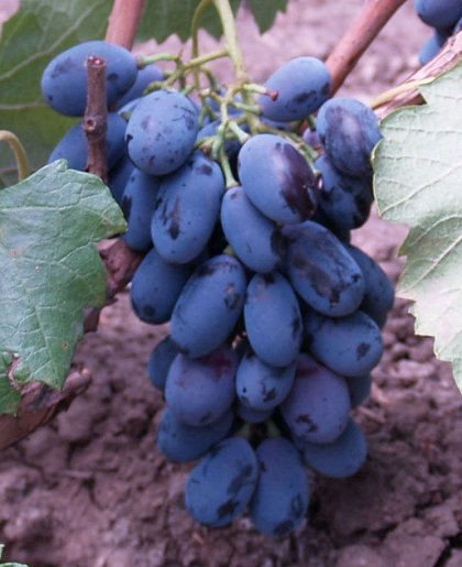 Кусты большой силы роста, со своеобразными свисающими листьями. Цветок обоеполый. Грозди рыхлые, массой 500-800 гр, ягоды овальные, средней массой 8,6 г, темно-синие, гармоничного приятного вкуса со сливовыми нотками. Кожица плотная, мякоть мясисто-сочная.