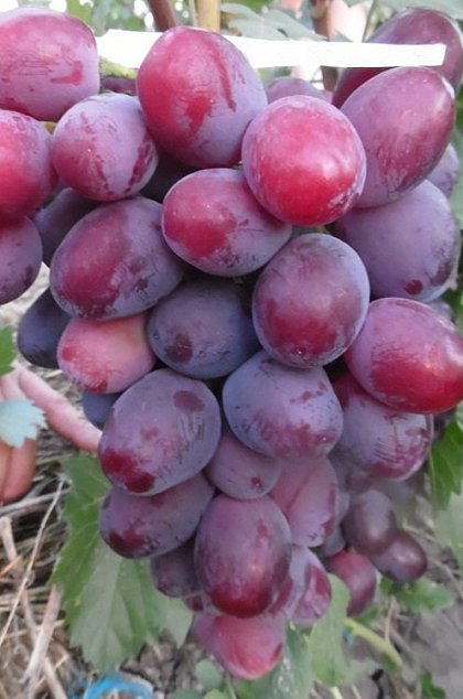 Грозди крупные, средней плотности, очень красивого нарядного вида. Цветок обоеполый, опыление проходит хорошо. Масса одной грозди колеблется от 600–1200 грамм.