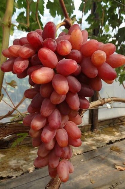 Грозди очень крупные, цилиндро-конической формы, иногда с крылом, средней плотности. Вес гроздей в основном свыше килограмма, отдельные достигали 2,5 кг. Опыление ровное, недоразвитых ягод нет.