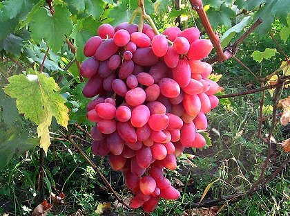 Ягоды также крупных размеров – 8 – 10 гр., розового цвета, с нежной мякотью мускатного вкуса, слабоовальной формы. Данный сорт является высокоурожайным. Устойчивость к морозам -23С. Устойчивость к грибным болезням 3,0 балла.