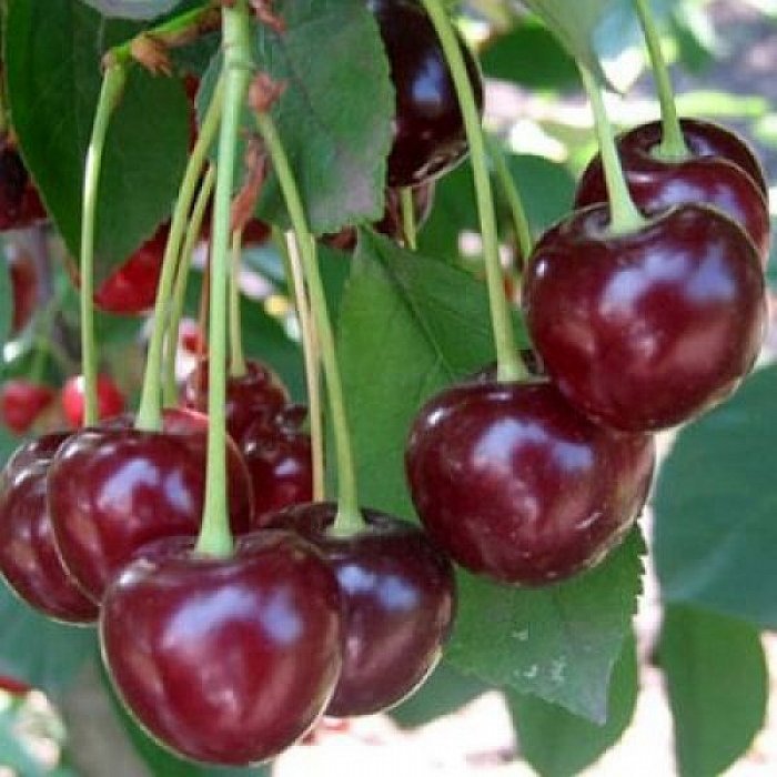 Плоды крупные, массой 5,5 - 7 грамм, широкосердцевидные, сжатые с боков, тёмно-красные. Мякоть тёмно-красная, кисло-сладкого хорошего вкуса(4,6 балла).