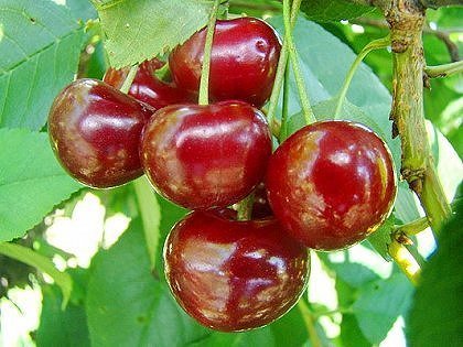 Плоды высоких товарных качеств, средней массой 8 - 9 грамм, округлой формы, тёмно-красные. Мякоть тёмно-красная, сочная, кисло-сладкого десертного вкуса. Устойчивость к заболеваниям высокая.