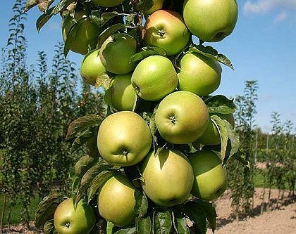 Яблоня колонновидная Президент - позднелетний сорт. Плоды средние иногда крупные от 100-140 г до 250 г, плоские, насыщенной бело-жёлтой окраски, блестящие, с плотной тонкой кожицей. Созревают в середине сентября и могут храниться полтора месяца. Вкус плодов кисло-сладкий, десертного типа с хорошо выраженным ароматом, мякоть белая, очень сочная, мелкозернистая. Продуктивность высокая - 80-100 т/га или 5-6 кг с деревца, а при повышенном уходе урожай может быть вдвое выше. Сорт очень скороплодный, плодоносит с первого года при посадке весной однолеток (на клоновых подвоях) и на 4-5-ый год набирает полный урожай. Плодоносит ежегодно, в саду держат до 15 лет.
