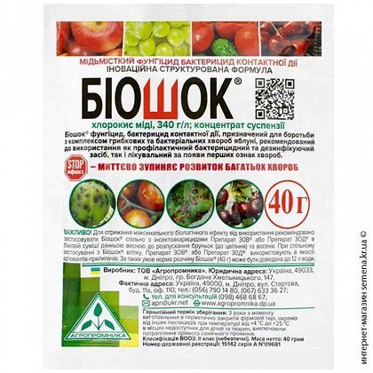 Механизм действия: Структурное покрытие препятствует проникновению патогенов грибов в глубь клеток растительного организма. Биошок подавляет организмы, препятствуя их развитию и росту. Благодаря вспомогательным веществам, входящим в состав, препарат обеспечивает хорошую смачиваемость, что позволяет длительно и крепко удерживать действующее вещество на поверхности растений.